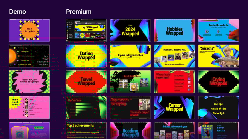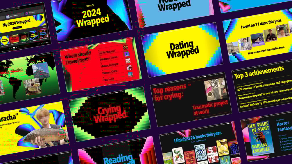 - 40+ slides from the latest 2024 Spotify Wrapped (6 colour variations) – PowerPoint, Google Slides and Canva